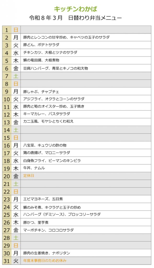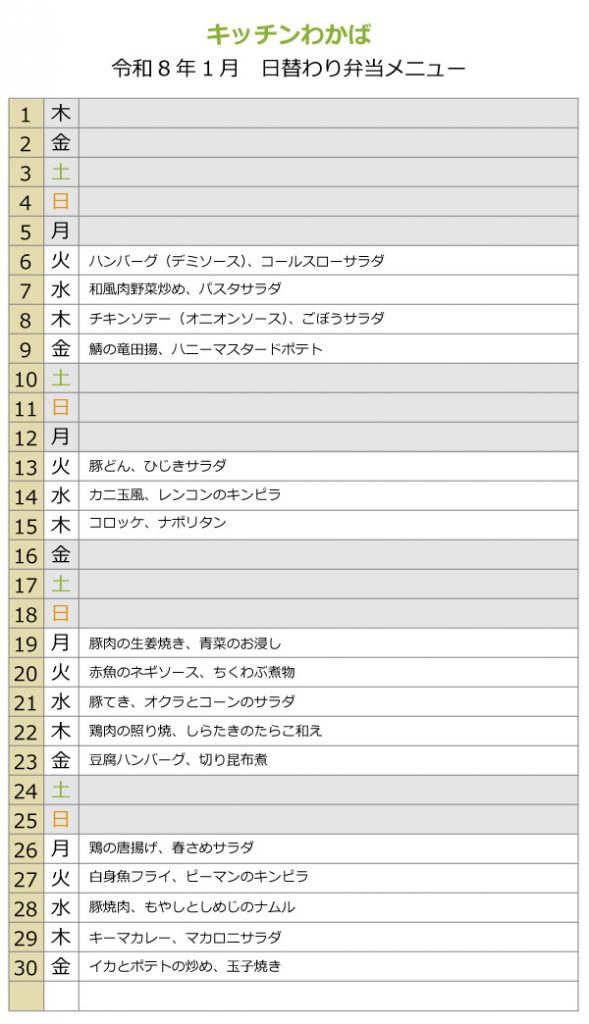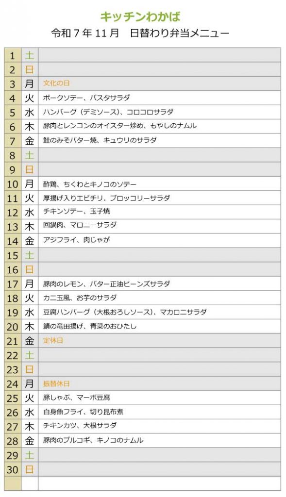 日替わりメニュー